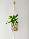 Macetero de macramé, para colgar las plantas, que aporta un toque bohemio y decorativo.